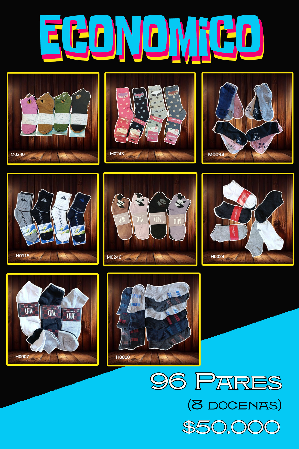 La foto es a modo ilustrativo, el combo será armado segun el stock disponible al momento de realizar la compra, respetando la cantidad de 96 pares (8 docenas)
